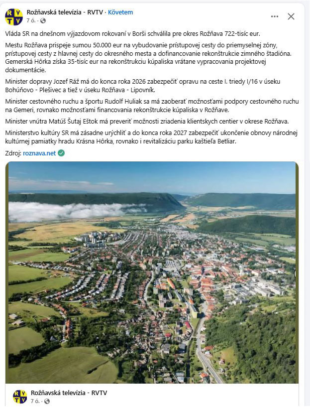 V stredu 24. septembra 2025 sa uskutočnilo výjazdové rokovanie vlády SR v obci Borša. Jeho cieľom bolo podporiť rozvoj najmenej rozvinutých okresov Rožňava a Trebišov. Na zlepšenie ich sociálno-ekonomickej situácie vláda schválila finančnú pomoc vo výške 2 010 000 eur. Medzi vládou podporené samosprávy patrí aj Obec Gemerská Hôrka, ktorá na projekt rekonštrukcie kúpaliska, vrátane vypracovania projektovej dokumentácie, získala finančnú pomoc vo výške 30 tisíc eur.